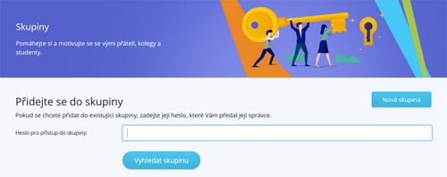 Každý učitel spravuje své školní skupiny sám a také k nim má sám přístup (uvidí aktivitu a statistiky svých studentů).