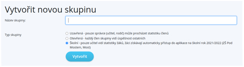 Aplikace nabízí dva základní typy skupin (plus jeden pro školy s hromadnou licencí):