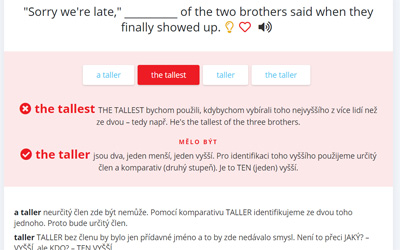 Stejně jako u ostatních funkcí English Me, i zde neustále přibývají nové materiály, tedy nové otázky s vysvětlením odpovědí.