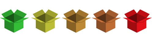 V první krabičce jsou slovíčka, která skvěle ovládám, v poslední jsou slovíčka, která vůbec neumím.